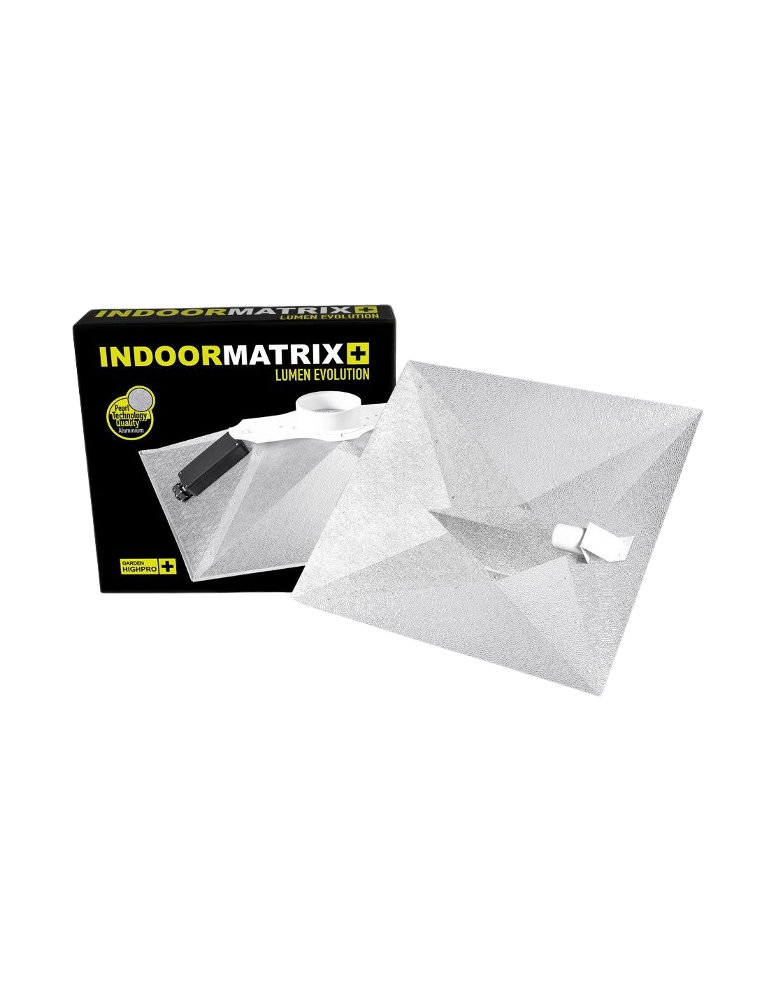 Adaptado para bombillas HPS de 250W a 600W y equipado con un adaptador de luz E-40, el Reflector Matrix Evolution se presenta como una solución flexible y eficaz para una variedad de configuraciones de cultivo, desde pequeñas tiendas hasta operaciones más extensas. Su diseño piramidal no solo dirige la luz con precisión hacia las plantas, sino que también facilita una disipación de calor efectiva, manteniendo un entorno de cultivo óptimo y extendiendo la vida útil de tus bombillas.